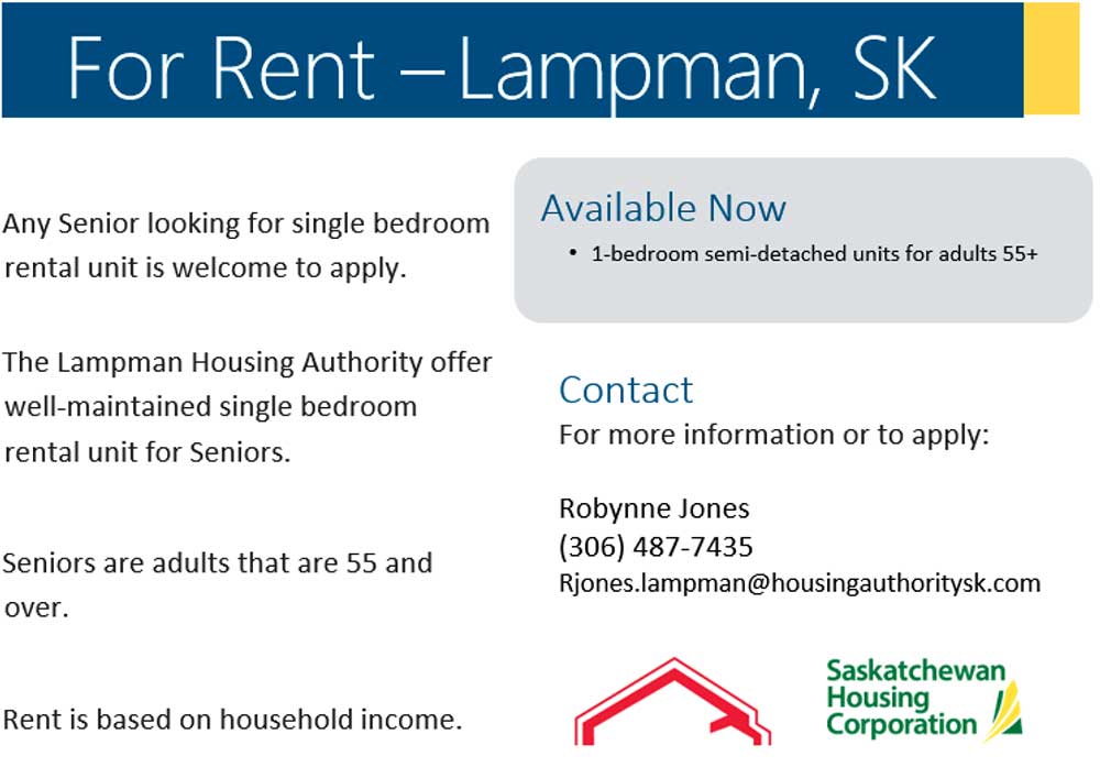 Lampman is home to approximately 730 and increasing due to being in the center of an active and growing oilfield providing opportunity for all individuals, families and businesses.